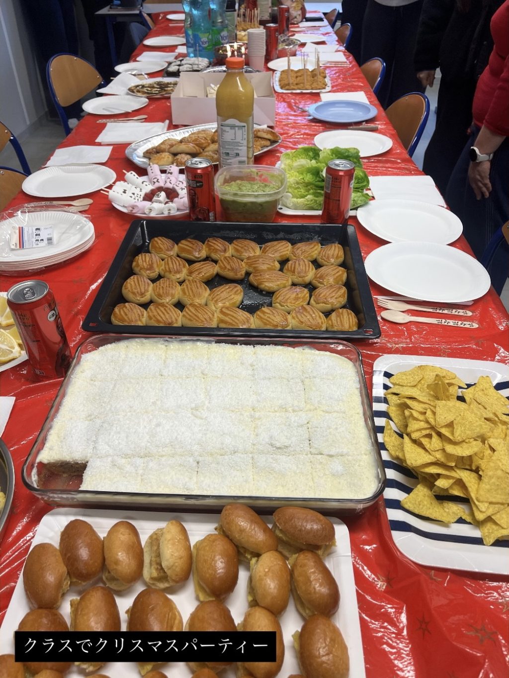 これは余談になりますが、クラス内でクリスマスパーティーも行いました。クラスメイトそれぞれが、お菓子や自分で作った料理、スイーツなどを持ち寄り、和やかな雰囲気の中で楽しい時間を過ごしました。また、その日は先生のお誕生日が近かったこともあり、クラス全員でケーキを用意し、サプライズでお祝いをしました。授業以外の場面でも交流を深めることができ、クラスの雰囲気がより一層良くなったと感じています。
