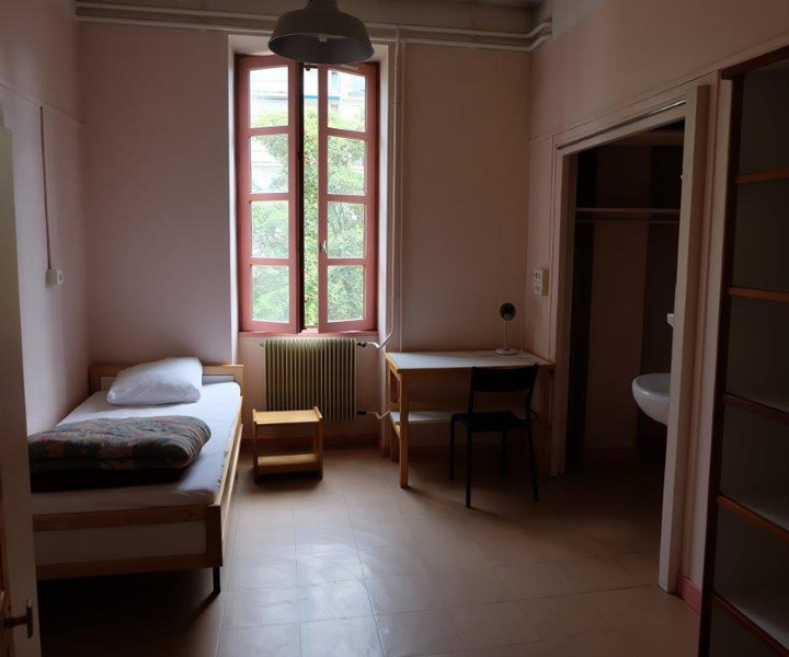 旧市街にあり、学校までトラム利用で約20分。寮内には自習室やコインランドリー(有料)があり、キッチンでは鍵付きの冷蔵庫と戸棚が各自に割り当てられている。